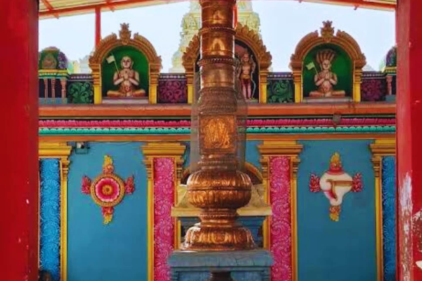 When you enter through the grand entrance, you will see a special flagpole called the Dwajasthambam. As we go further inside the temple, there is a large hall called the Maha Mantapam and a smaller hall known as the Arda Mantapam.