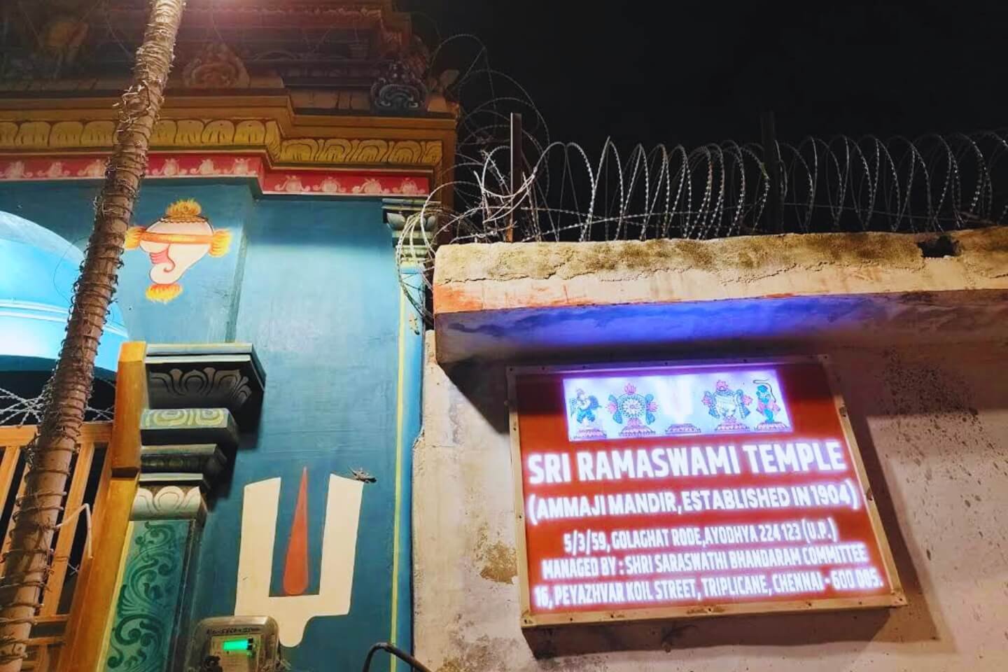 This temple has a history of about a century and is situated near the banks of the Sarayu River in Ayodhya. It was established through the dedicated efforts of two noble individuals, Yogi Parthasarathy Iyengar and Smt. Singammal.